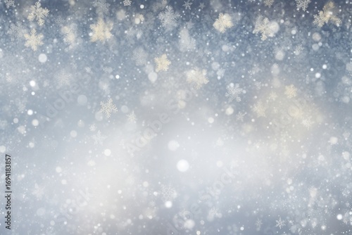 Fototapeta premium Bokeh light snowflakes background texture winter.