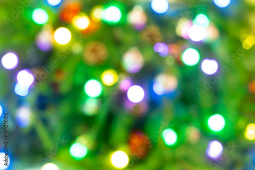 © Natallia, Obraz premium Bokeh lights up the background. Abstract multicolored light. Blurred lights on Christmas tree, Christmas background
