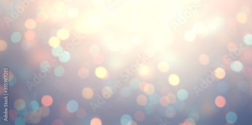 © avextra, Fototapeta premium Bokeh sequins pattern. Silvery golden shimmer. New year wonderful festive space. Brilliant confetti. Blurred illustration. Defocused template. Empty background. Abstract texture.