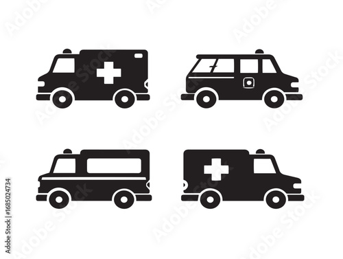 © Mitu321, Fototapeta premium Bold Ambulance Silhouette Icon Set with Minimal Design