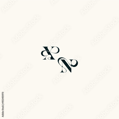 © Vanza, Naklejka premium bold and hairline initial wedding monogram elegant NX fancy curve logo letter
