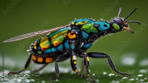 © Oleksandr, Fototapeta premium Bold beetle navigating the rich, moist soil of the forest floor, exploring its diverse and thriving habitat