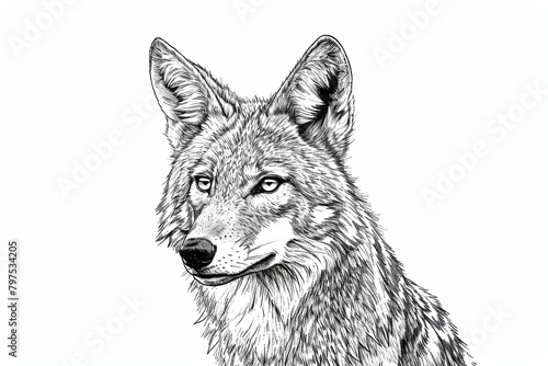 Fototapeta premium Bold Black and White Coyote Ink Drawing Sketch__