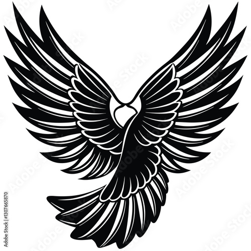 Obraz premium Bold Black and White Eagle Line Art - Vector Illustration, Flying Hawk Tattoo Design - Monochrome Digital Artwork,bird's wing