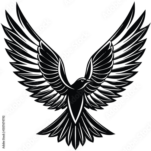 Obraz premium Bold Black and White Eagle Line Art - Vector Illustration, Flying Hawk Tattoo Design - Monochrome Digital Artwork,bird's wing