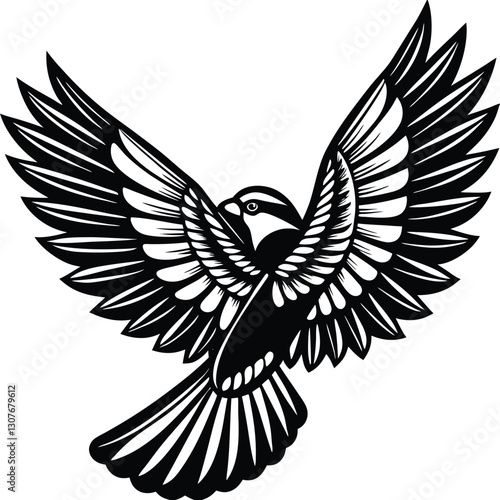 Obraz premium Bold Black and White Eagle Line Art - Vector Illustration, Flying Hawk Tattoo Design - Monochrome Digital Artwork,bird's wing