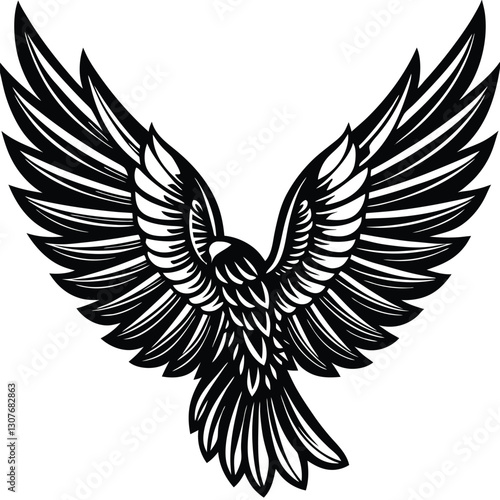 Obraz premium Bold Black and White Eagle Line Art - Vector Illustration, Flying Hawk Tattoo Design - Monochrome Digital Artwork,bird's wing
