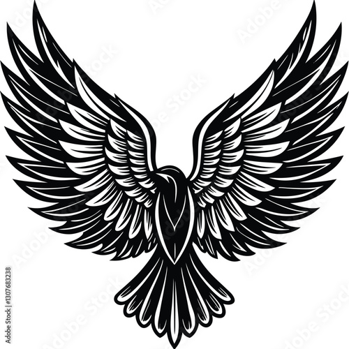 Obraz premium Bold Black and White Eagle Line Art - Vector Illustration, Flying Hawk Tattoo Design - Monochrome Digital Artwork,bird's wing