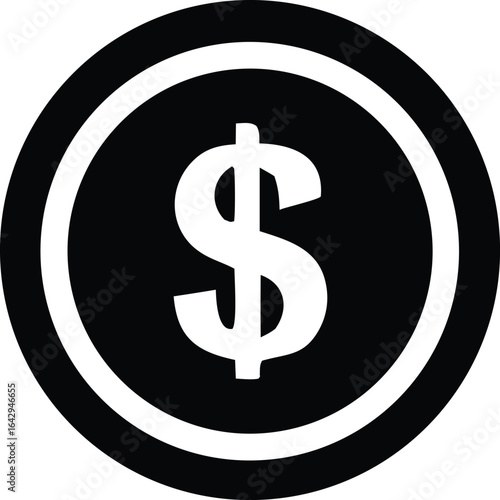 © PrimeVector Art, Obraz premium Bold black and white icon featuring a prominent dollar sign centered within a circular outline representing currency