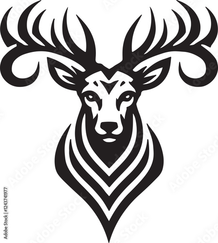 Fototapeta premium Bold Black and White Tribal-Style Majestic Deer with Intricate Antlers Vector