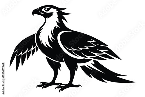 © Shipon, Obraz premium Bold Black Eagle Silhouette with Sharp Feathers