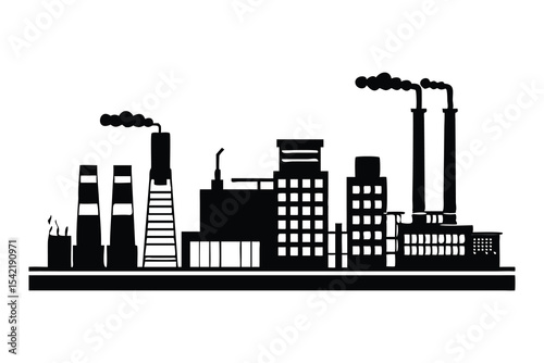 Obraz premium Bold Black Industrial Factory Icons Vector Set for Urban Development and...