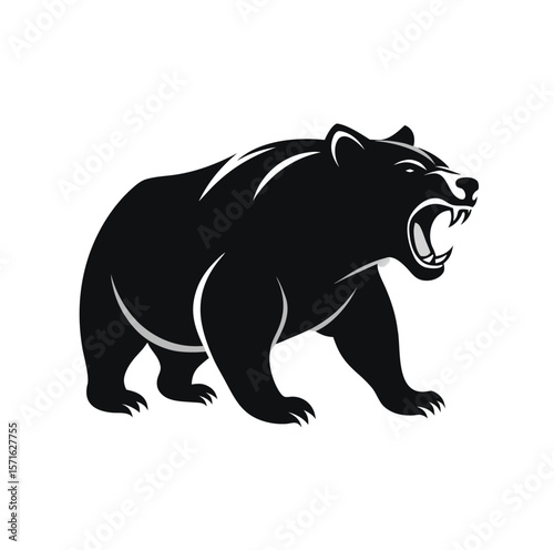 © Mithun, Fototapeta premium Bold black silhouette of a grizzly bear in mid stride isolated on white background
