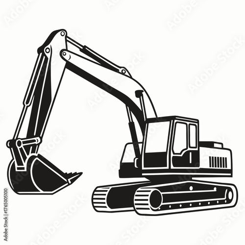 Fototapeta premium Bold black silhouette of a powerful excavator digging heavy construction machinery equipment outline