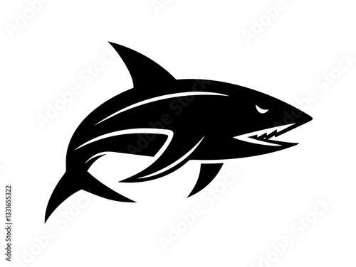 © Bakkar, Obraz premium Bold black silhouette of a shark..Generative ai
