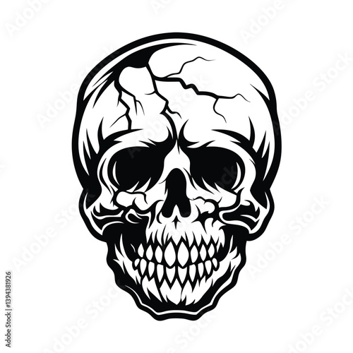 © Shipon, Fototapeta premium Bold Black Skull with Intricate Cracks & Detailed Tooth Structure, on White