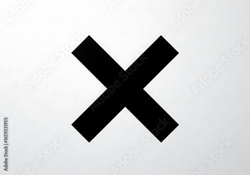 © R.Fauzi, Obraz premium Bold black X symbol on white textured background, representing error, cancellation, rejection, or prohibition in a minimalist design.