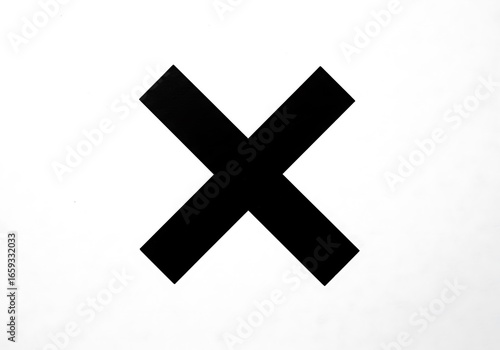 © R.Fauzi, Obraz premium Bold black X symbol on white textured background, representing error, cancellation, rejection, or prohibition in a minimalist design.