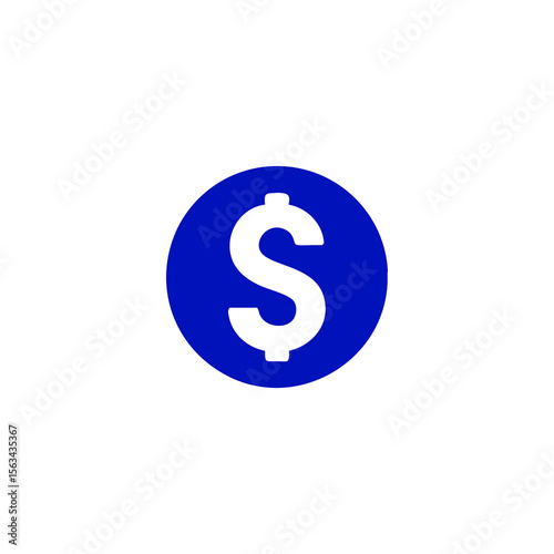 Fototapeta premium Bold blue circle framing a crisp white dollar sign icon