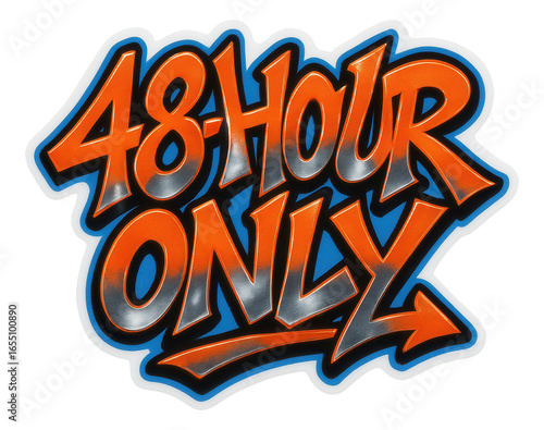 Fototapeta premium Bold blue tag sticker with 48-HOUR ONLY sale in dynamic graffiti style,...