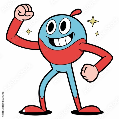© Chrish, Obraz premium Bold Cartoon Vector Character Cheering with Fist Raised in Motivation