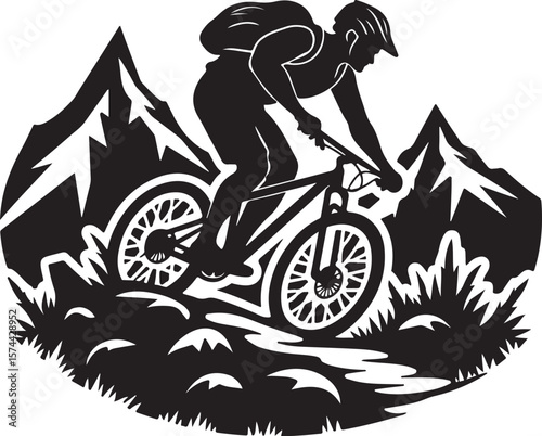 Naklejka premium Bold Cyclist Silhouette on Mountain Path.