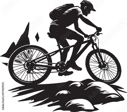 Obraz premium Bold Cyclist Silhouette on Mountain Path.