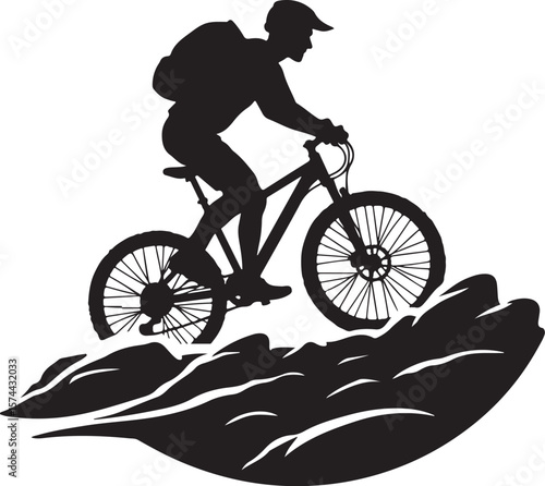 Obraz premium Bold Cyclist Silhouette on Mountain Path.