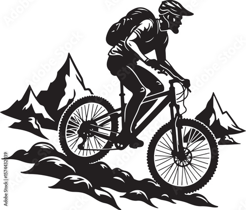 Obraz premium Bold Cyclist Silhouette on Mountain Path.
