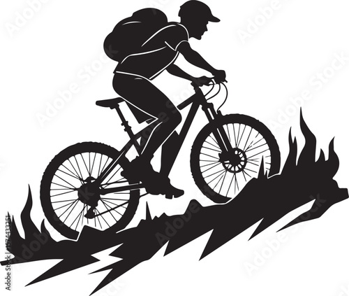 © Al, Obraz premium Bold Cyclist Silhouette on Mountain Path.