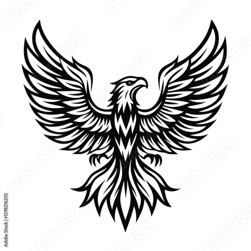 Obraz premium Bold Eagle Silhouette, Wings Spread, Striking Black Design, Bird of Prey,...