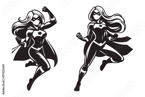 © Nasir, Fototapeta premium Bold Female Superhero Silhouette Black Vector Graphic