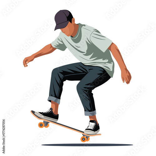 © MohammadIftekhar, Obraz premium Bold Flat Skateboarding Vector Illustration.