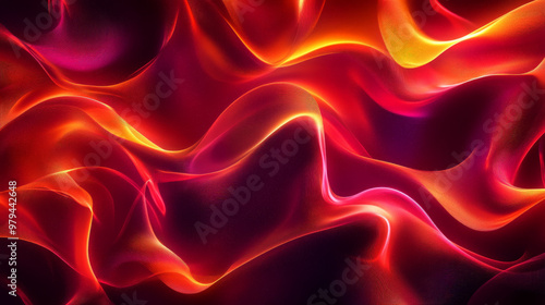 © Volodymyr, Obraz premium Bold, fluid 3D waves in a fiery red and orange gradient, creating an energetic and vibrant abstract pattern with intricate light reflections across a dark backdrop.