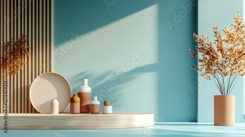 © M2A, Obraz premium Bold forms and earthy tones unite in this stunning arrangement of vases and decorative items, crafted to evoke a contemporary feel that inspires creativity and elegance indoors.