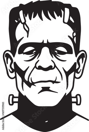 Fototapeta premium Bold Frankenstein Monster Illustration, Perfect for Halloween Designs and Spooky Themes, Classic Horror Icon, Vector Art for Posters, Stickers, and More
