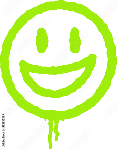 © vectorfusionart, Naklejka premium Bold graffiti-style smiley face is dripping green paint in flat style on transparent background