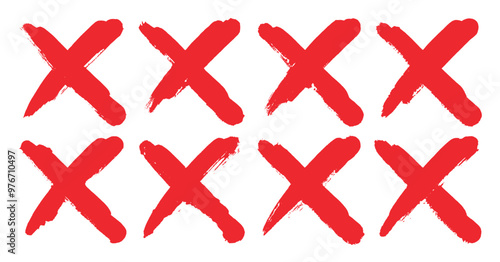 © LADALIDI, Obraz premium Bold hand painted red X cross mark rough brush strokes, disapproval, choice, mistake, error, cancel incorrect symbol.