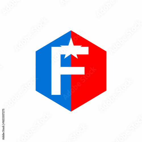 © petot, Obraz premium Bold Hexagonal Letter F Logo with Star Design