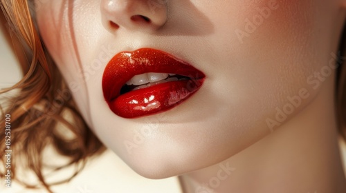 Obraz premium Bold Lips: A detailed shot of a models lips with bold vibrant lipstick....