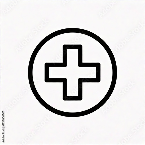 © Fatwaram, Fototapeta premium Bold Medical Cross Icon: Minimalist Circular Design