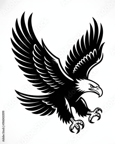 © B, Obraz premium Bold Monochrome Eagle in Flight Vector Illustration with Spread Wings