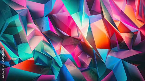 Obraz premium Bold neon polygons in pink blue and green form this vibrant Cubist backdrop textured