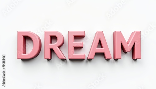 © umut hasanoglu, Fototapeta premium Bold pink word 'DREAM' on a white background.
