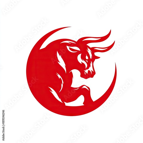 Obraz premium Bold red bull silhouette inside circle shape design graphic element