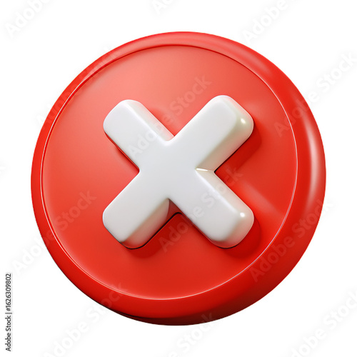Fototapeta premium Bold Red 3D Circle with Raised White X Mark and Glossy Plastic Finish