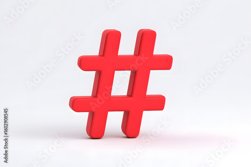 Obraz premium Bold red 3D hashtag symbol on clean background. Ideal for social media,...