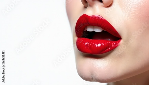 Obraz premium Bold red lip color against stark white backdrop High-res image , macro, lip