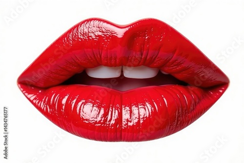 © Sathaporn Buarabut, Obraz premium Bold red lip swatch against pure white backdrop , matte, lip swatch, isolated