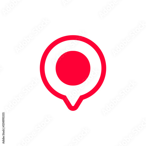 © Oleksii Bezrodnii, Fototapeta premium Bold red location marker symbol with central circle, ideal for map and navigation applications.